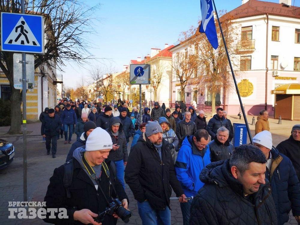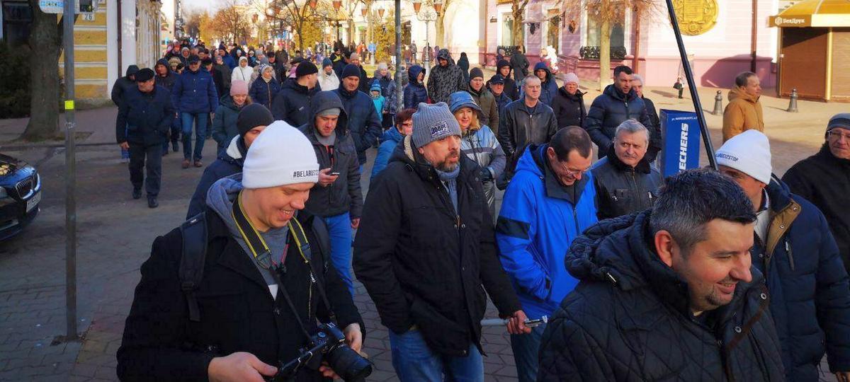 После кормления голубей противники завода по традиции прошли по улицам Пушкинской и Советской к кинотеатру «Беларусь».