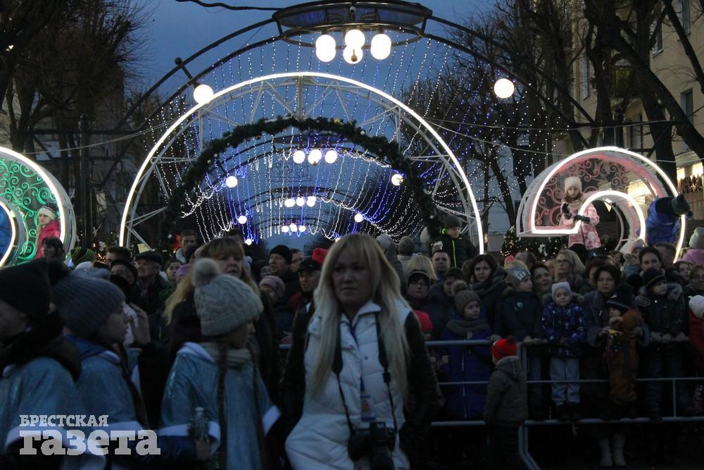 Вечером 21 декабря Брест буквально погрузился в сказку: огромное количество праздничной иллюминации, нарядные артисты, сказочные персонажи.