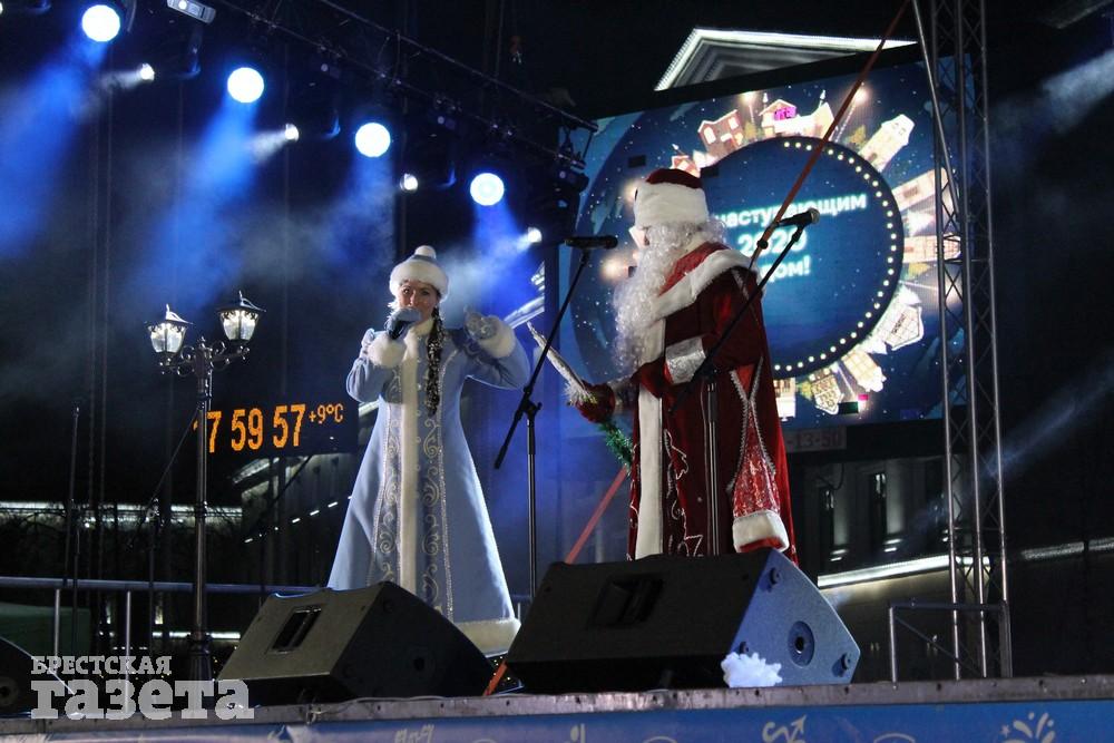 Дед Мороз и Снегурочка на открытии главной елки Бреста-2020