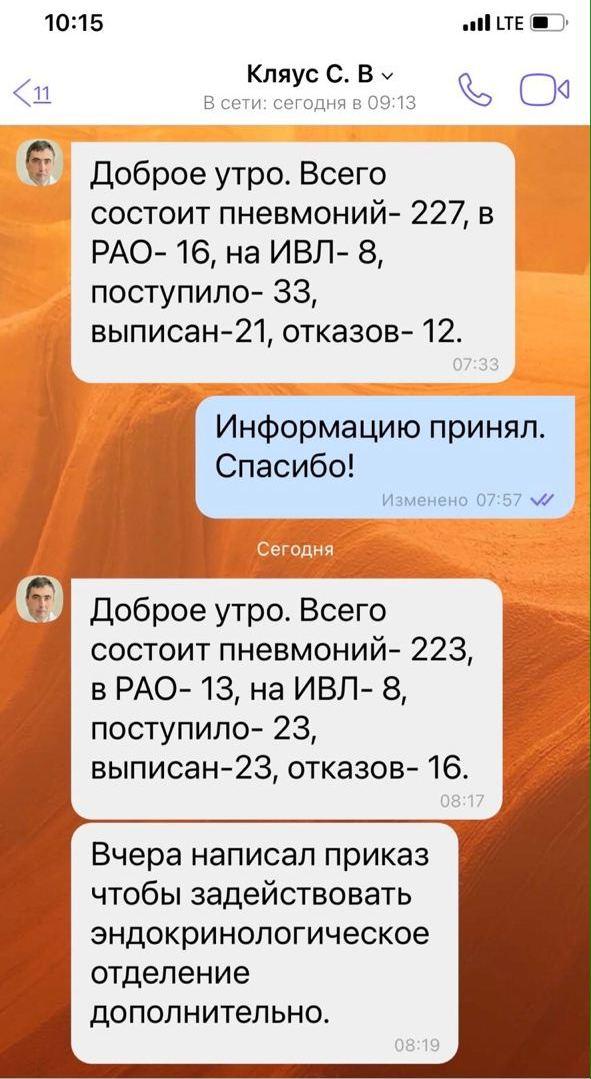 В сообщении Сергея Кляуса говорится, что всего состоит 223 пневмонии, в реанимационно-анестезиологическом отделении – 13, на ИВЛ – 8, поступило 23 человека, выписано также 23, отказов – 16. Главный врач Бреста написал приказ, чтобы задействовать эндокринологическое отделение дополнительно.