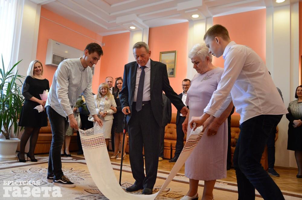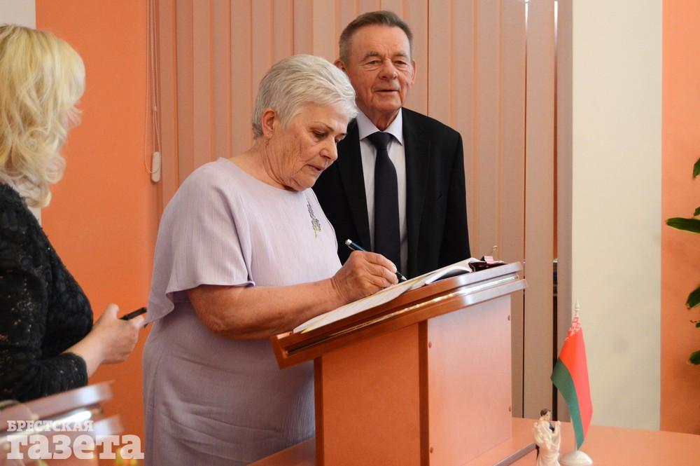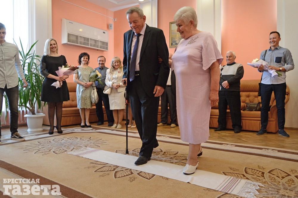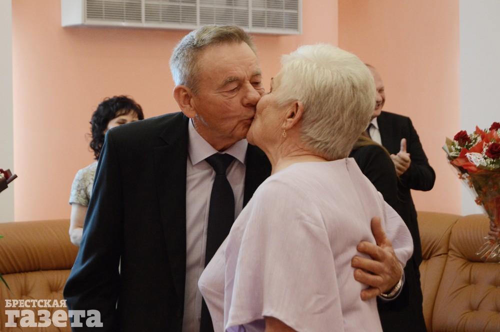 Бриллиантовый юбилей супруги отметили 8 мая в стенах отдела ЗАГС Брестского горисполкома. Вместе с ними этот праздник разделили их родные и близкие. В этот день они вновь надели на безымянные пальцы друг другу обручальные кольца, шагнули на дорогу следующего, седьмого по счету, десятилетия счастливой семейной жизни через рушник, танцевали под «Зорку ясную» и снова закрепили свой союз поцелуем и бокалом шампанского.