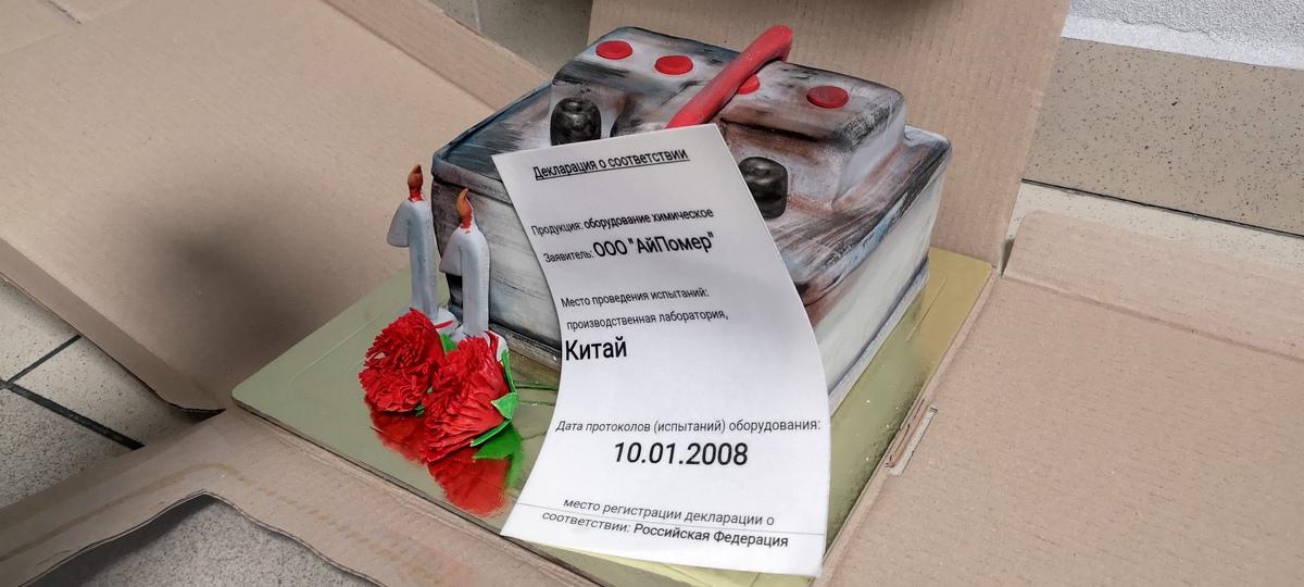 «10 января 2019 года исполнилось ровно 11 лет с окончания испытания китайского оборудования: линии по миксированию пасты, которая будет установлена на заводе по производству свинцово-кислотных аккумуляторных батарей ООО «АйПауэр» под Брестом. В честь этого активисты заказали торт в виде аккумулятора», — рассказал «БГ» 15 января один из активистов Дмитрий Бекалюк.