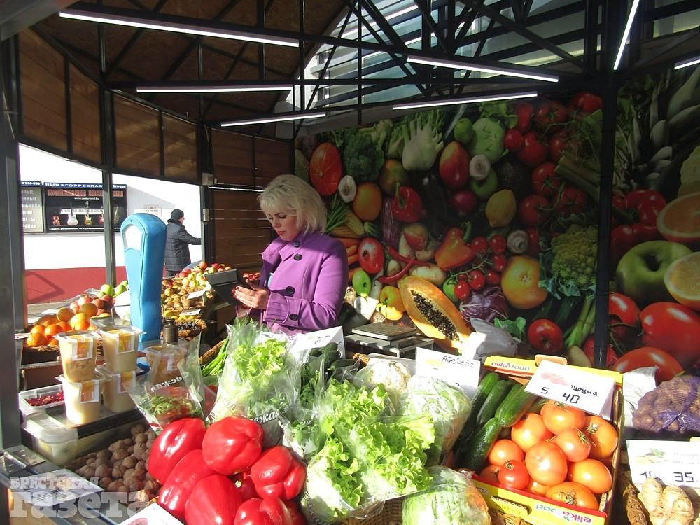 В прошлый раз мы отметили, что существенно подорожали огурцы. Стоимость килограмма была 7,50 – 14 рублей. Сейчас цены снизились. Диапазон – от 6 до 8 рублей. Помидоры продают по 5 — 6,50 рубля, перец – по 7,50 – 8,50 рубля. В прошлый наш визит на рынок стоимость перца колебалась от 6,50 до 8 рублей. Подорожала и пекинская капуста: с 2 – 2,80 до 3 – 3,20. Свекла и репчатый лук также поднялись в цене. Стоимость две недели назад была от 0,80 до 1 рубля. Теперь – 1,20. Картофель продают в основном по 1 рублю за килограмм, капусту – по 0,50 – 0,60. В одной точке на рынке уже представлена и ранняя капуста. Цена – 4,50.
