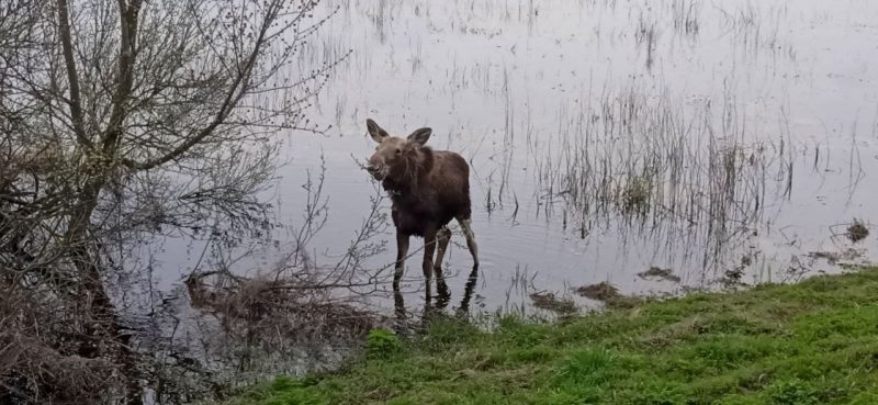 Молодого заблудившегося лося заметили в пригороде Пинска вдоль автотрассы Р-6. Как пишут наши подписчики, судьбой животного уже занимаются специалисты местной природоохранной инспекции.