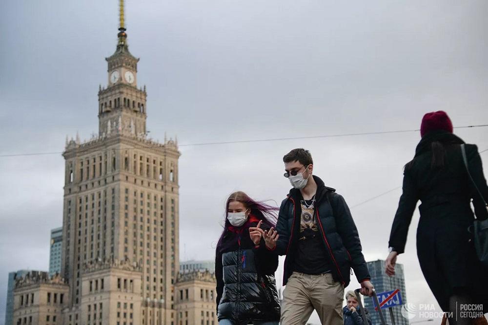Прохожие в масках на одной из улиц Варшавы. Фото: РИА Новости