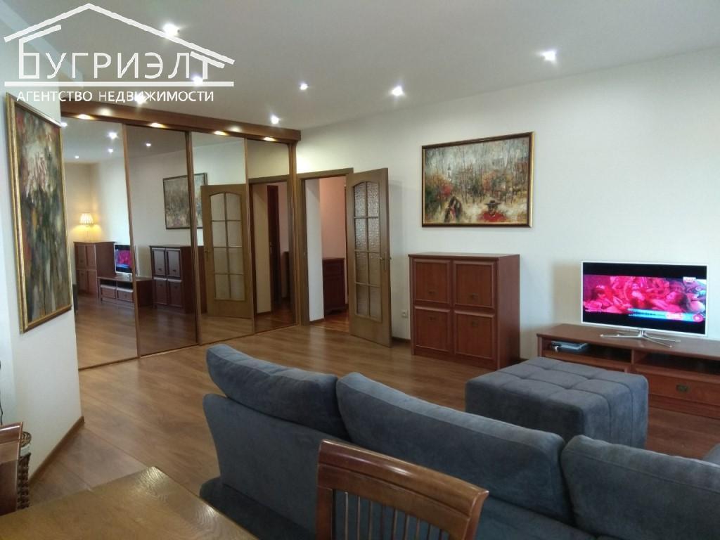 Общая площадь квартиры с лоджией составляет 104,1 кв. м, жилая — 34,1 кв. м, кухня-столовая — 47,1. Квартира с живописным видом из окон продается со всей мебелью и техникой.