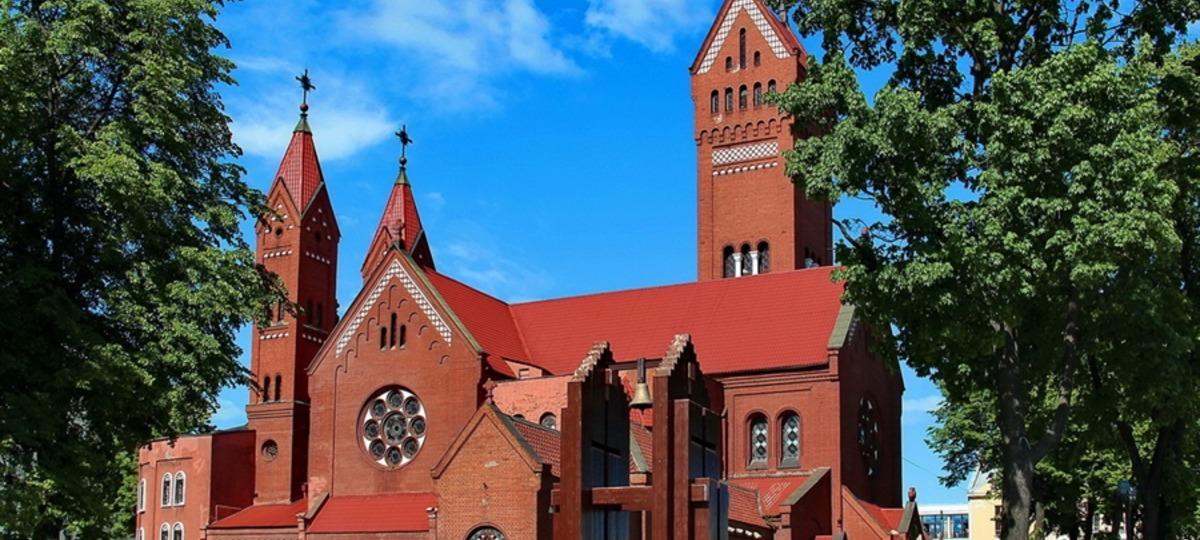 Костел Святого Симеона и Святой Елены – наиболее известный католический храм Минска. Он был построен в 1905 году. С 1932 по 1990 годы в костеле располагались службы киностудии, Дом кино и Музей кино. Здание костела построено из кирпича бордового цвета, поэтому получило в народе название «Красный костел».