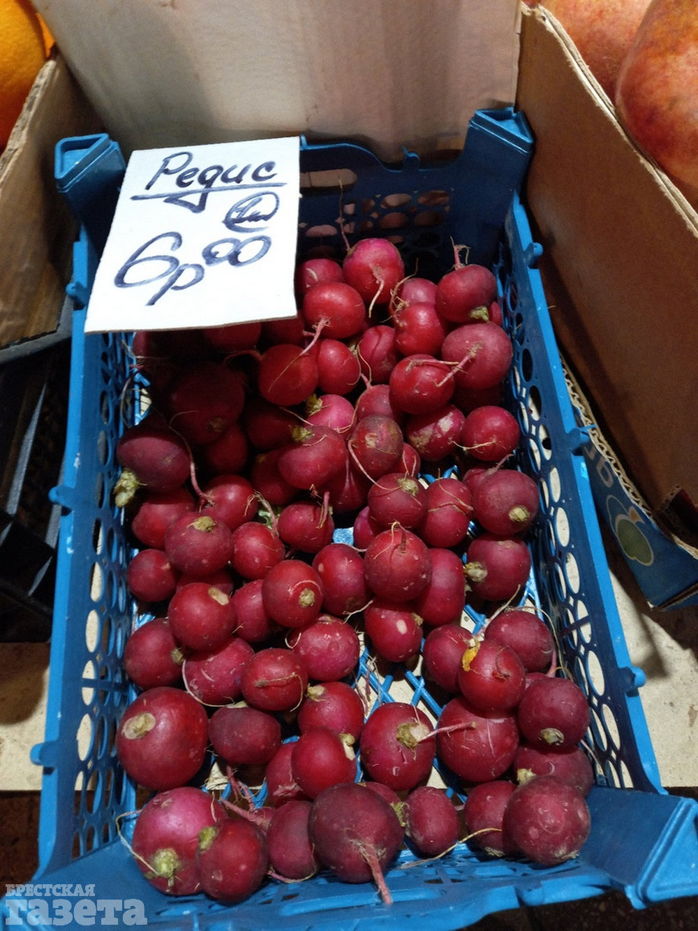 Активно продают на рыночных рядах и огородную зелень (1,5 – 2 рубля за пучок), свежий редис (6 рублей за килограмм), молодую капусту (3 – 3,50 за килограмм), кабачки (6 – 6,50 за килограмм), баклажаны (7 рублей за килограмм) и прочие сезонные (и не только) овощи и фрукты.