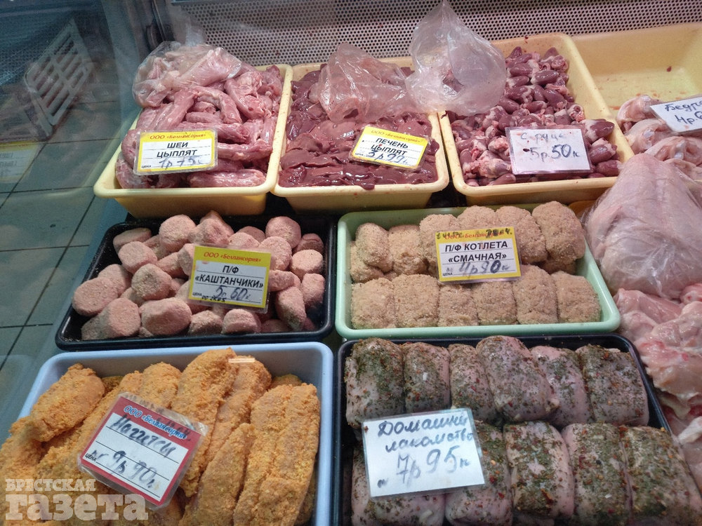 Еще недавно брестчане негодовали, почему в магазинах резко подскочили цены на куриное филе. «Брестский рынок» решил пока держать цены в узде. Филе здесь, как и прежде, стоит в районе 7 рублей за килограмм.