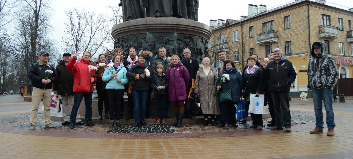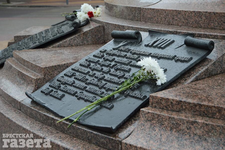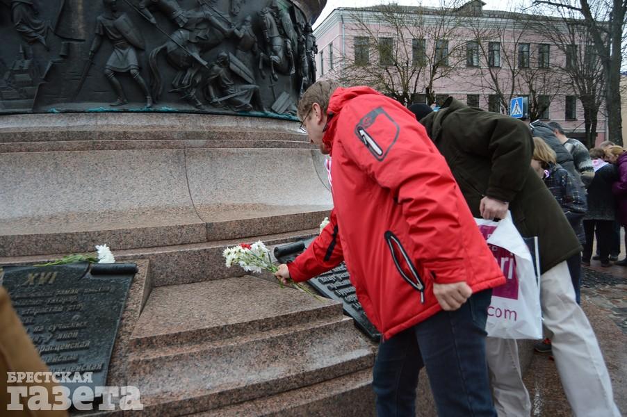 Брестчане поздравили друг друга в Днем Воли и возложили цветы у памятника 1000-летию Бреста.