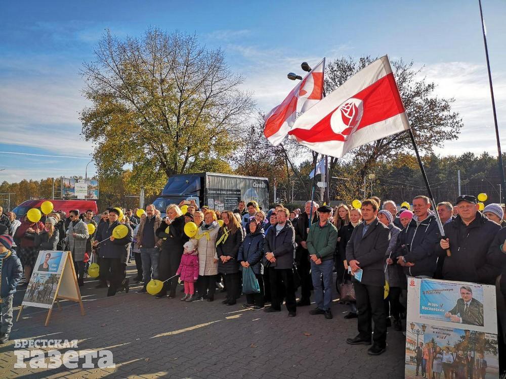 Днем 3 ноября на площадке возле гипермаркета на улице Московской в Бресте кандидаты в депутаты Анна Канюс (Брестский-Восточный избирательный округ №3) и Игорь Масловский (Брестский-Пограничный избирательный округ №4) провели санкционированный пикет. Изначально анонсировалось, что он состоится на площадке возле ДК профсоюзов, но поскольку городской отдел по ЧС проводил там свое мероприятие, было принято решение переместиться через дорогу.
