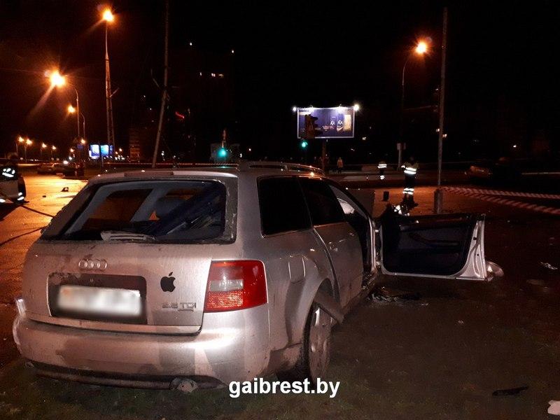 По предварительной информации областной ГАИ, брестчанин 1986 года рождения, управляя «Ауди А6», ехал от ул. Пионерской в сторону ул. 28-го Июля. Машина врезалась в «Фольксваген Пассат», за рулем которого был житель Бреста 1995 года рождения. Он ехал по ул. 28-го Июля и поворачивал налево на зеленый свет.