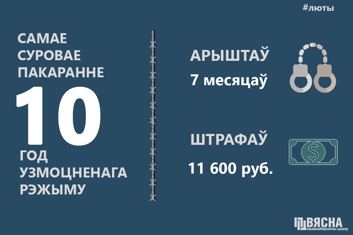Самое суровое наказание в феврале 2021 года получил житель Бреста Александр Кордюков — 10 лет лишения свободы за сопротивлением милиции с применением насилия, убитый Геннадий Шутов по этому же делу признан виновным посмертно.