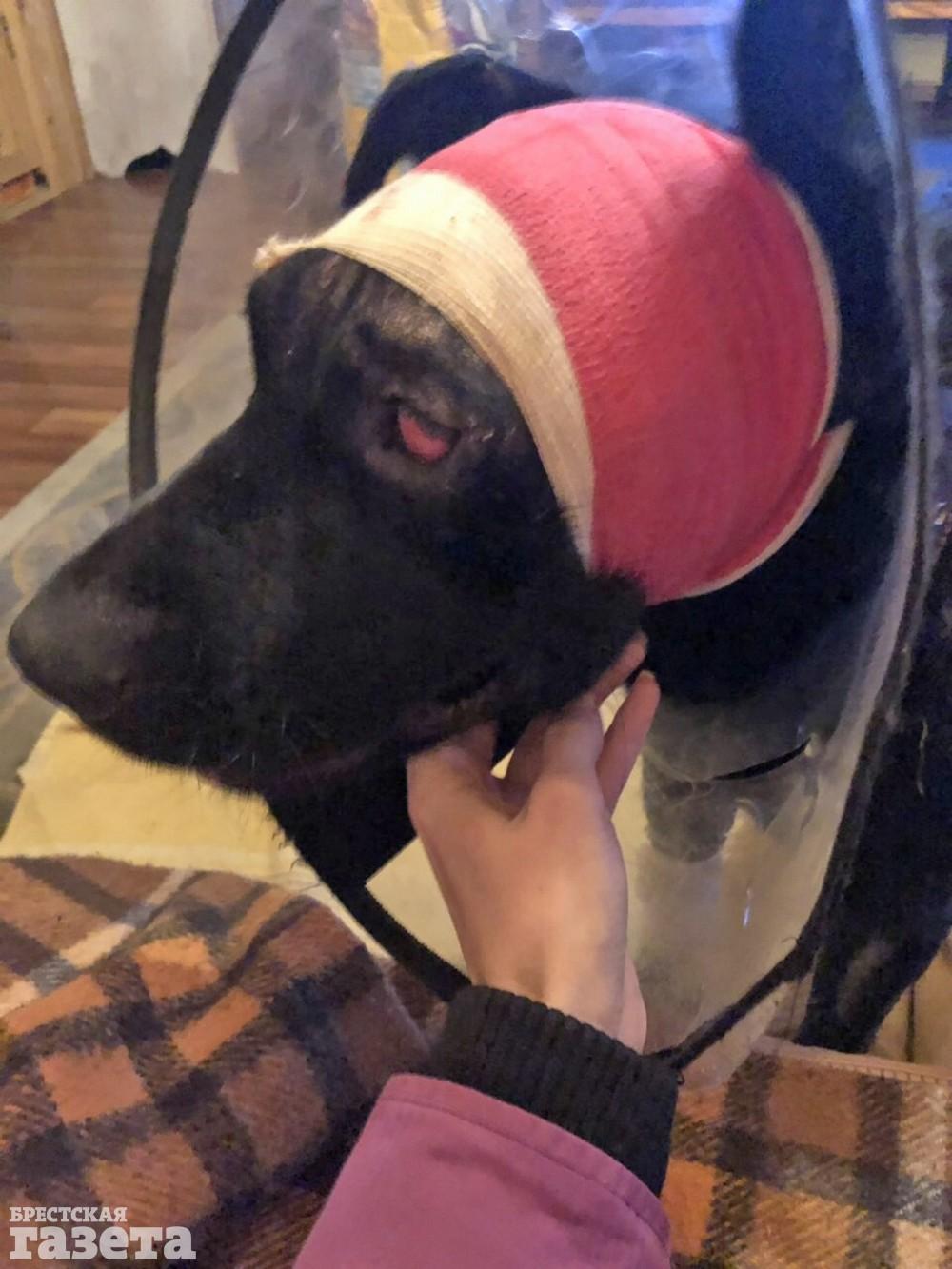 Чуть больше недели назад собака, которую жестоко избили в Ружанах, перенесла операцию на голову, а уже сегодня пытается самостоятельно гулять.