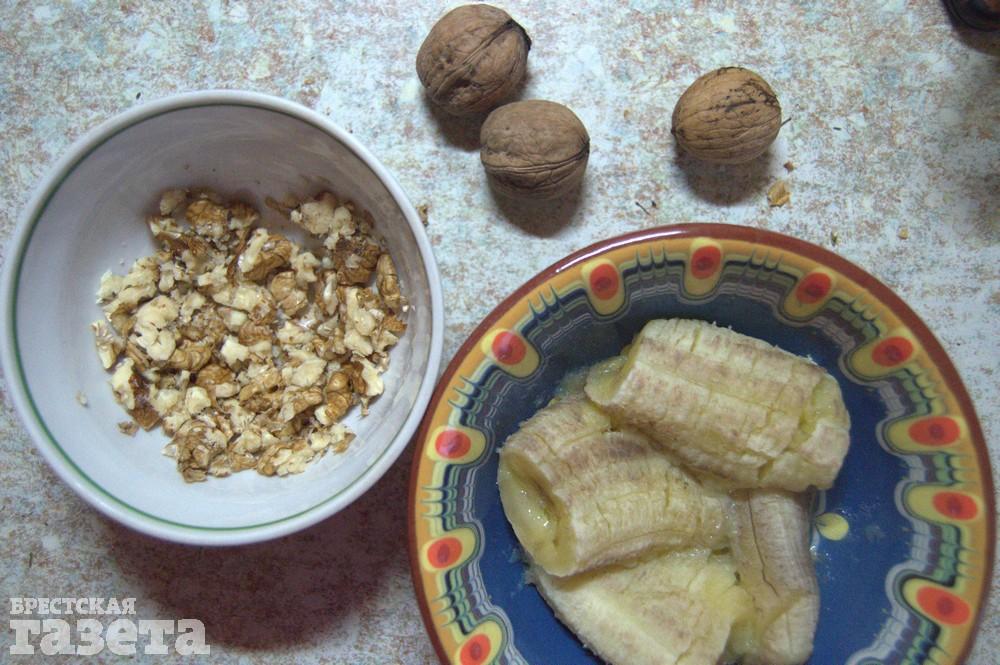 Надо (на 1 порцию): 1 банан, 70 г молока, 5-6 грецких орехов, 1 ч. л. корицы.