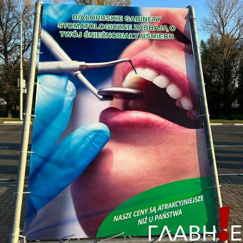 На выезде из Бреста в Польшу поставили пропагандистские рекламные плакаты — поляков хотят завлечь в Беларусь дешевой стоматологией