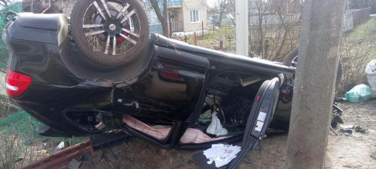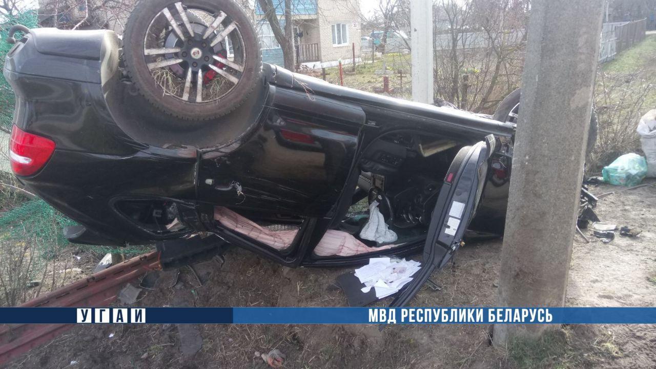 От удара кроссовер съехал в кювет, снес заборное ограждение, перевернулся и врезался в опору линии электропередач. Водитель погиб на месте ДТП.