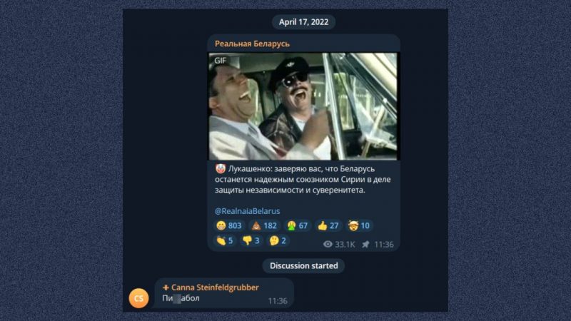 По версии обвинения, Янчук совершил уголовное преступление следующим образом: 17 апреля 2022 года в 11.36 под публикацией в телеграм-канале «Реальная Беларусь» написал комментарий от имени пользователя «Canna Steinfeldgrubber», в котором было матерное слово со значением «лгун».