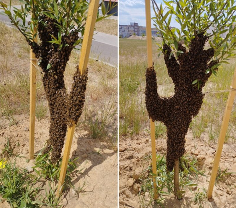 Фотофакт: посмотрите, как рой пчел оккупировал деревце в Барановичах