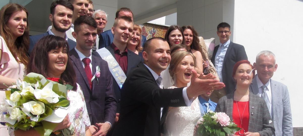 Брестчане Евгений и Екатерина Иванкины вместе уже полтора года. Он – программист, она – работает в банке. Пара расписалась в отделе ЗАГС Брестского горисполкома 7 июня. В этот день поздравить их пришли самые близкие друзья и родные.