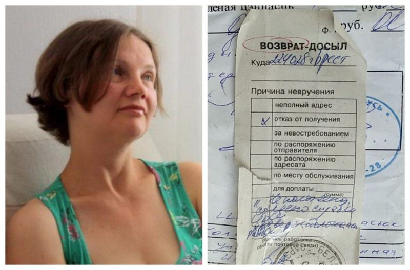 Бандероль для политзаключенной брестской активистки Полины Шарендо-Панасюк через месяц вернулась назад к ее родителям с пометкой «отказ от получения» и припиской плохим почерком «не положено по срокам». Об этом сообщает муж Полины Андрей Шарендо.