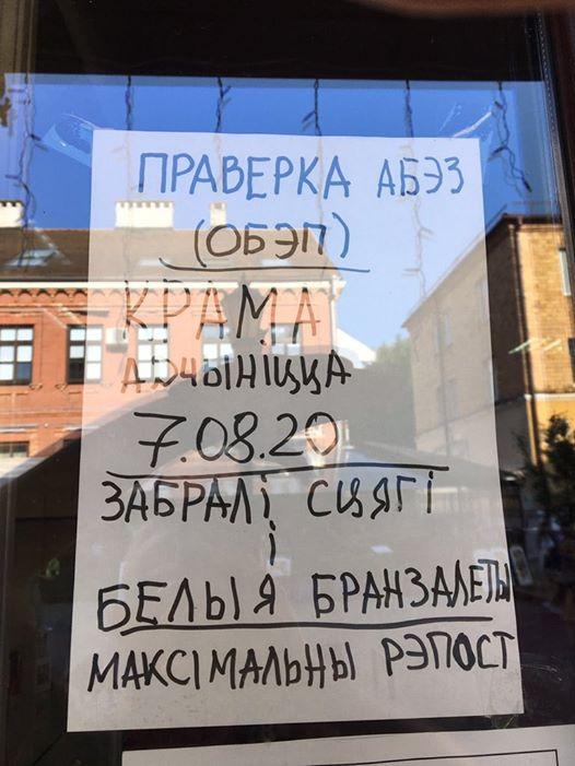 В четверг 6 августа в социальной сети Facebook появился снимок объявления на магазине «Князь Вітаўт» в Бресте, который предлагает покупателям предметы с национальной символикой и другие сувениры. На сфотографированной рукописной вывеске говорится, что магазин откроется 7 августа, потому как его проверяет ОБЭП. Снимок разместил на своей странице Анатолий Наумович.