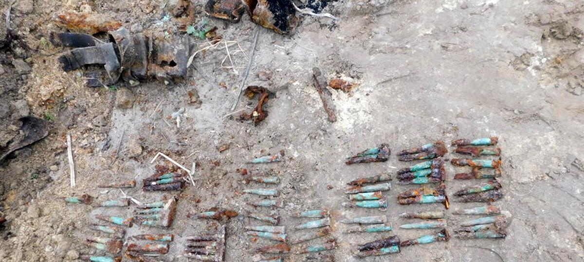 В ходе дальнейшего осмотра следователь принял решение вызвать саперно-пиротехническую группу. В результате найдено 79 патронов, костные останки, а также фрагменты личных вещей. Предположительно, обнаруженное относится к периоду Великой Отечественной войны.