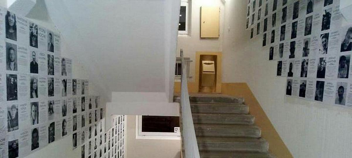 Журналист говорит, что портреты политзаключенных висели на стенах подъезда несколько месяцев и «никому до них никакого дела не было», однако вчера их сняли коммунальщики.