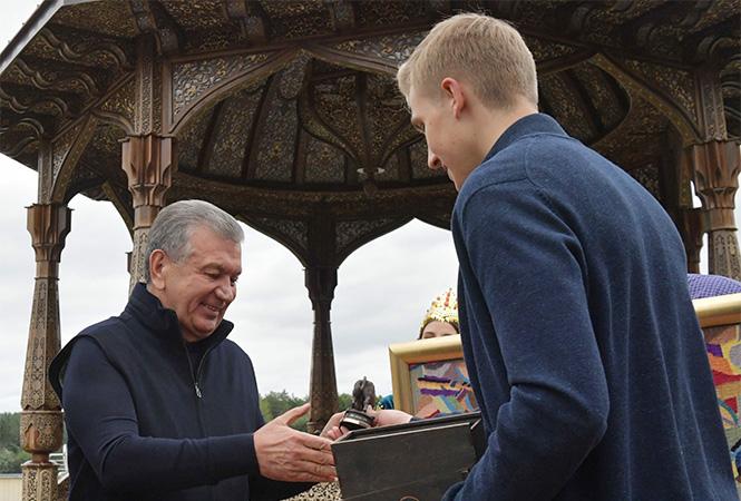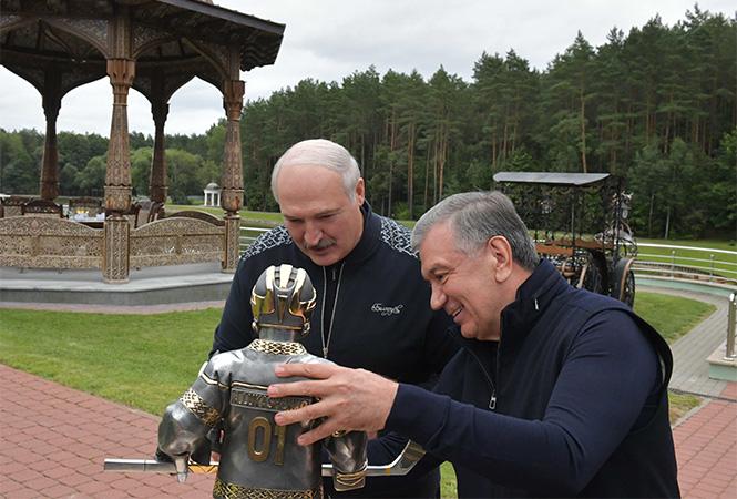 Как сообщала пресс-служба президента Беларуси, встреча глав государств состоялась накануне вечером в резиденции Лукашенко «Заславль» под Минском. Лукашенко презентовал своему узбекскому коллеге панно «Беларус» и белорусскую вышиванку, а его младший сын Николай вручил президенту Узбекистана статуэтку зубра.