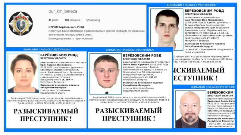 Брестская «Весна» нашла 10 примеров того, как березовская милиция разыскивает «преступников», чье уголовное преследование связано с политическими причинами. 9 человек — местные, но почему-то особое внимание было уделено и минчанину Вадиму Прокопьеву. На кого-то завели уголовные дела за «оскорбление представителя власти», а четыре человека находятся в розыске из-за неявки на военные сборы. Более подробно о людях, которых ищет милиция, читайте здесь.