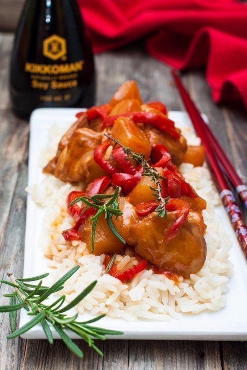 А также 5 ч. л. коричневого сахара, 2 ст. л. томатной пасты, 1 красный болгарский перец, 1 ст. консервированного кусочками ананаса.