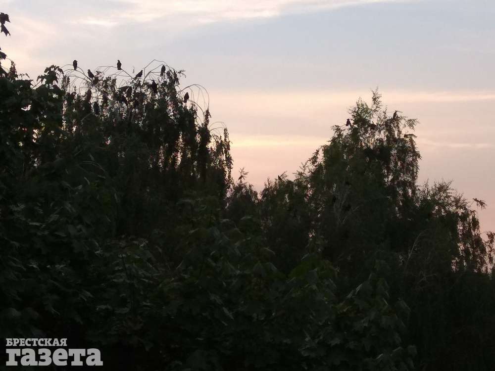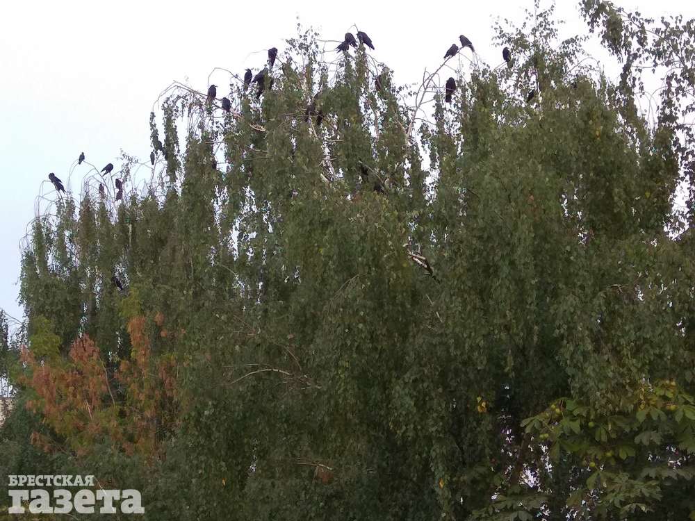 Эта история началась более года назад. Стаи ворон облюбовали для гнездования и сборов деревья у дома №342/5 по ул. Московской в Бресте. Речь идет не о десятках птиц, здесь их сотни. Думаю, многие горожане, живущие поблизости, наблюдают, как сюда стягиваются целые тучи ворон. Стоит невероятный шум, ими загаживаются припаркованные рядом с домом автомобили. Кроме этого, повсюду валяются обломки веток. Только представьте себе громкое карканье сотен ворон в 4 утра летом, когда открыты все окна.