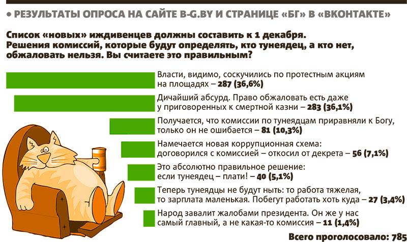 — Тут двоякая ситуация. Вроде они и должны платить, но в стране такие условия, что по-другому выжить невозможно. Наверное, лучше было оставить налог на тунеядство. С другой стороны, если мой муж, например, тунеядец, а я работаю, как они будут считать? Они это не прорабатывают. И опять будут очереди стоять, будет миллион возмущенных, и опять придется что-то новое придумывать. У нас и так в стране все платное. Квартплата уже приближается к 100%. В принципе, что ты тунеядец, что нет, через два года ты будешь платить 100% за услуги ЖКХ — работай не работай! И если человек не хочет работать, если он не стремиться к этому и к тому, чтобы жить лучше, то он не будет работать.