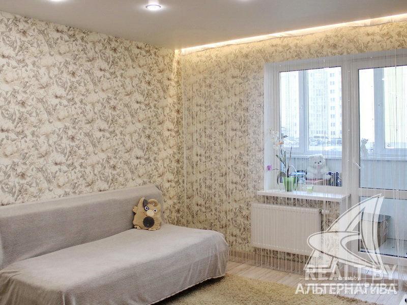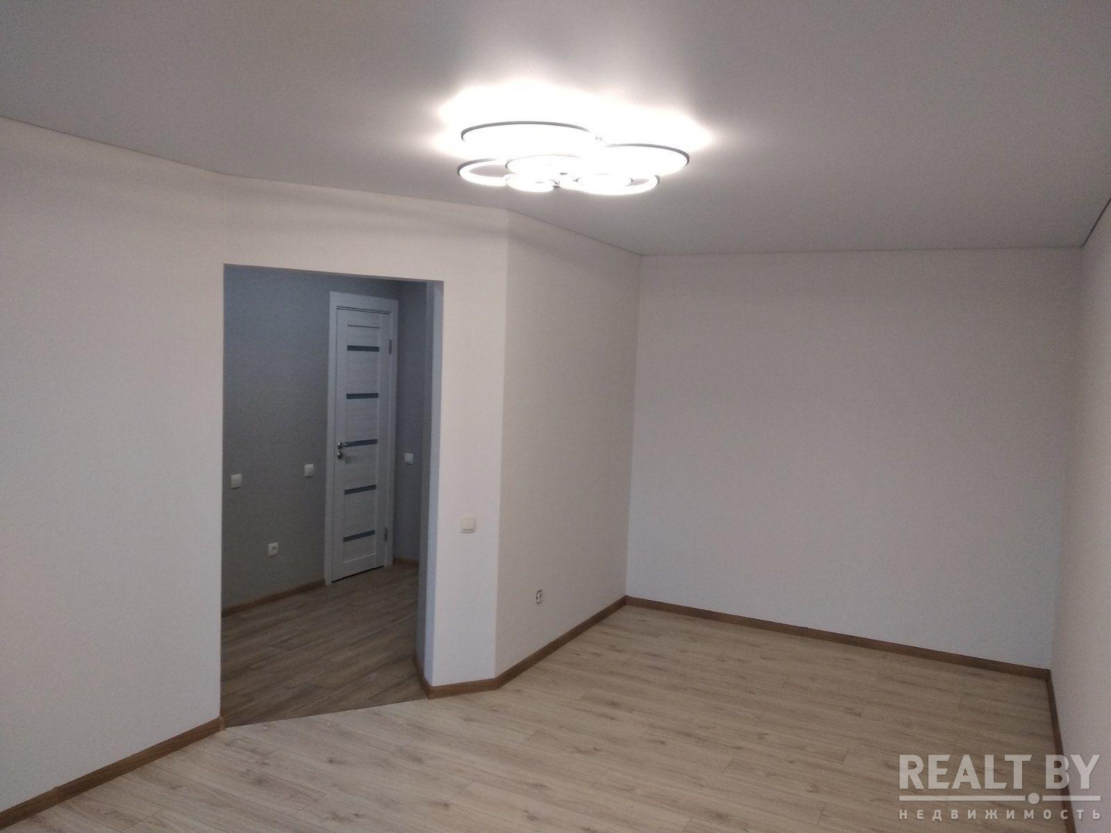 В квартире стоят стеклопакеты ПВХ, потолок – натяжной, стены оклеены обоями. Напольное покрытие в комнате — ламинат. Входная дверь — металлическая. В санузле положена современная керамическая плитка и установлена новая сантехника.