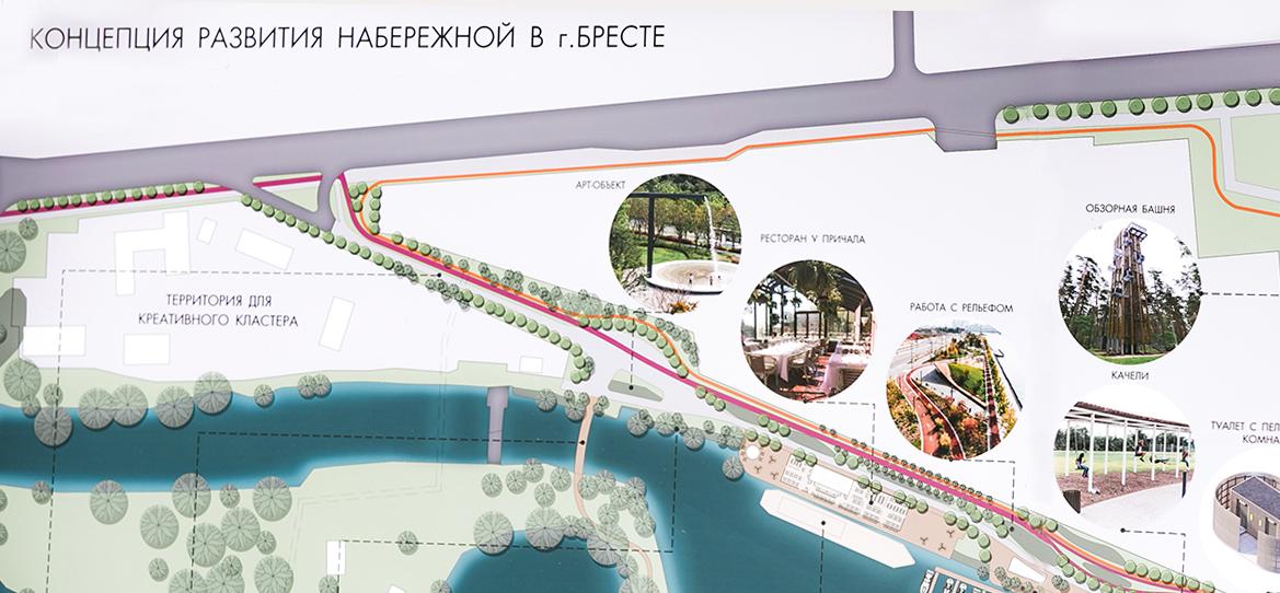7 ноября начальник управления архитектуры и градостроительства Брестского горисполкома Николай Власюк объявил о четвертом этапе проектирования и строительства городской набережной. Он предполагает устройство набережной как общественного пространства от Городского сада к шлюзам и выходом к музею паровозов.