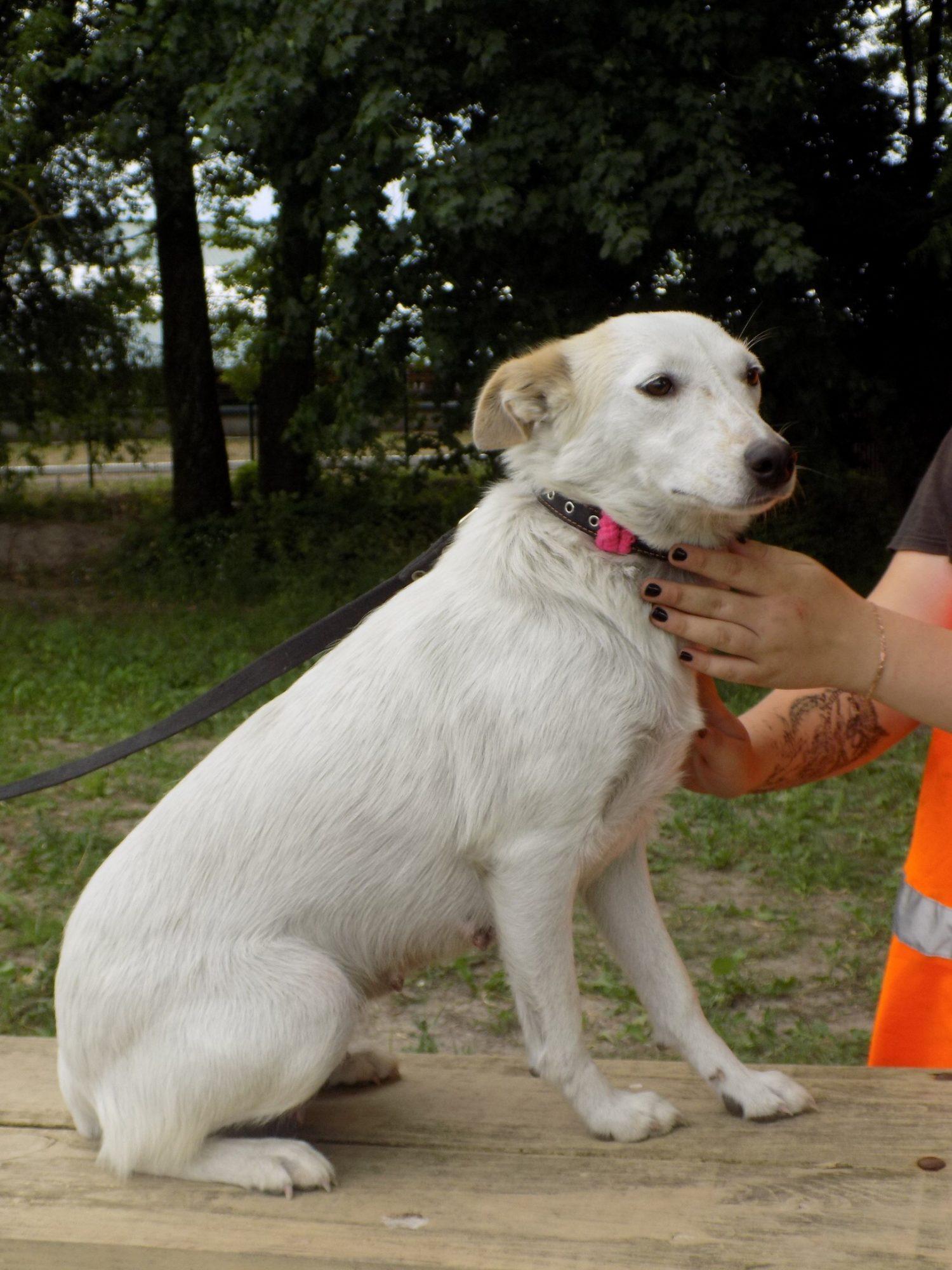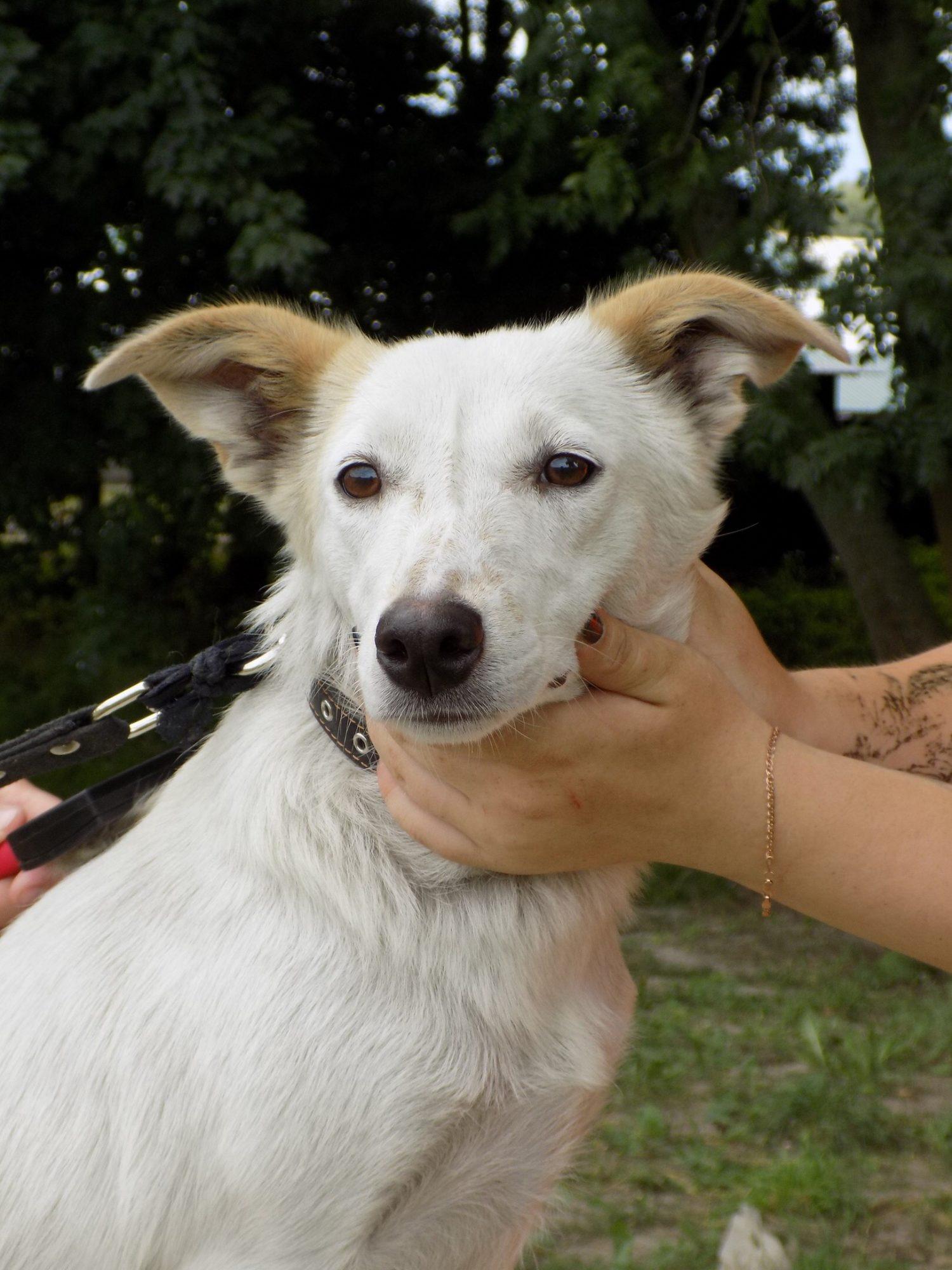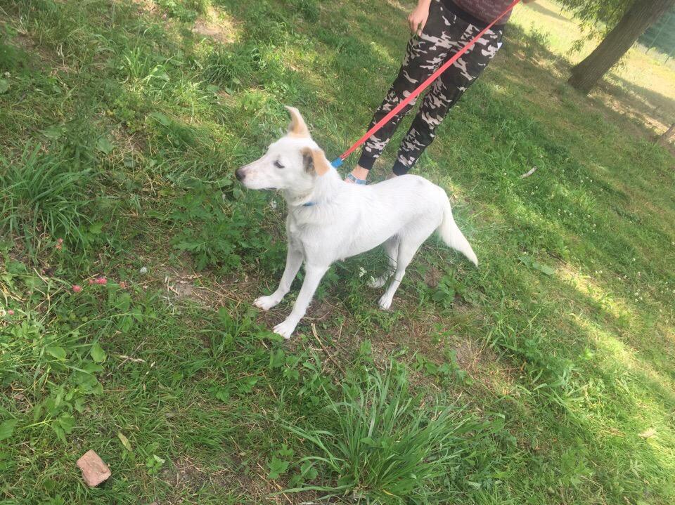 Лаки-Белянка молодая, здоровая, воспитанная. Среднего размера. Стерилизована. Настороженно относится к мужчинам.