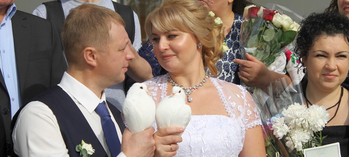 «Я – не молодой жених, мне 36 лет. Уже был в браке, но тем не менее страшно волнуюсь перед приездом невесты», — признался перед регистрацией брака Михаил Борщ. Его избранница — Ирина Угляница.