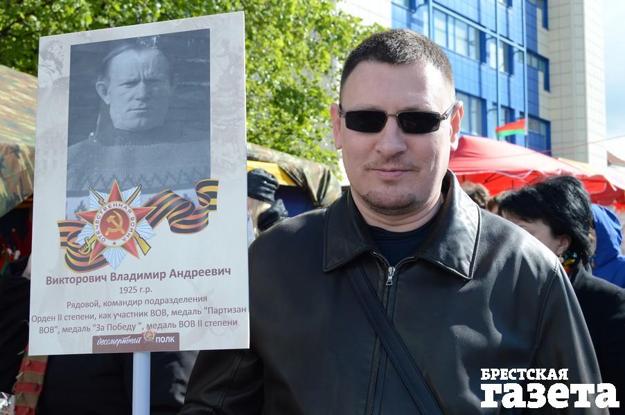 — Это мой дедушка Владимир Андреевич Викторович. Я сам из Москвы, а дедушка родился в селе Телеханы в Брестской области. Из-за того что старшие братья были партизанами, фашисты сожгли их трехгодовалую сестру. После этого он в 17 лет тоже пошел в партизаны. Он здесь воевал, поэтому мы сюда приехали впервые на 9 Мая. Умер он уже в пожилом возрасте на Урале, где все мы и родились.