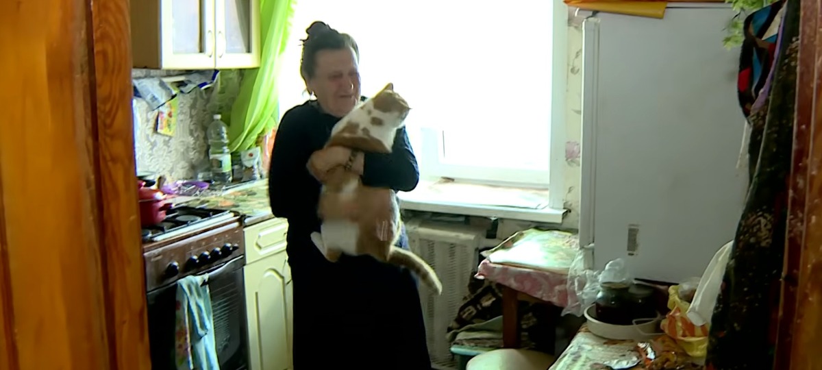 Елена Твердая с одним из своих котов. Скриншот видео