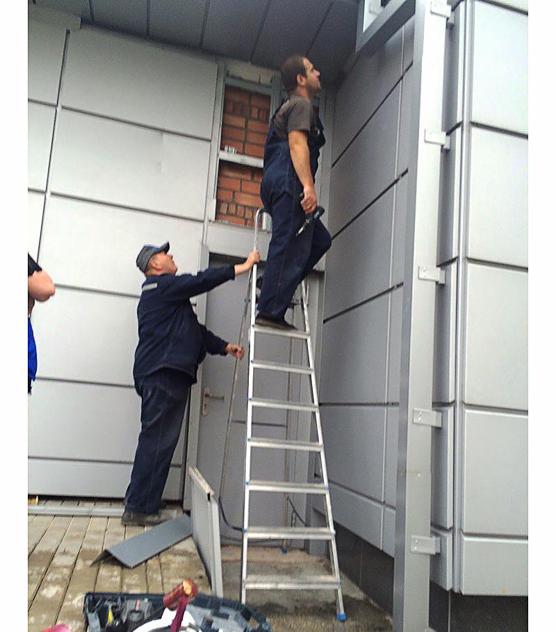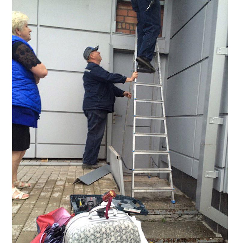 К девушкам-волонтерам подошла мама Насти Гакамской: женщина увидела их из окна квартиры. Она готова была принести стремянку, все что угодно, сбегала за зонтиком для девушек — шел дождь. Вышли несколько сотрудников магазина, в том числе его заведующая. По словам Ольги Вабищевич, администрация сразу же согласилась помочь и вызвала свою стройбригаду.